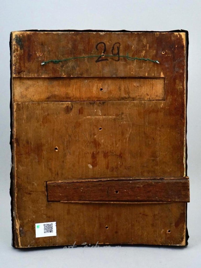 Нижний Новгород, 1834 год. Русская православная икона, украшенная чеканкой и репузе серебряной позолоченной окладом с позолоченными ореолами. Дева Мария держит младенца Иисуса у себя на боку и указывает на него как на источник Спасения. Маркировка: городская марка Нижнего Новгорода, серебряный стандарт 84, 1834 год, марка мастера "И.П."