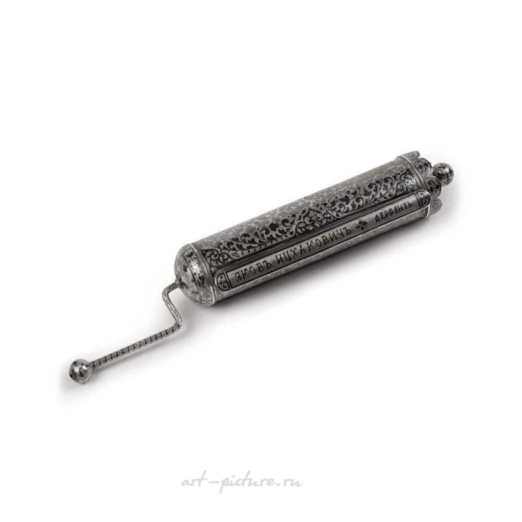 Надписи, переведенные с кириллицы, гласят "Яков Ицакович, Дербент" на рукоятке; на стволе "сувенир с Кавказа 1902 года". Дербент - древний город в Дагестане на западном побережье Каспийского моря. Еврейская энциклопедия указывает еврейское население в 1891 году в количестве 2 490 человек из общей численности населения 15 265 человек. В 1888 году было зарегистрировано 4 синагоги.
