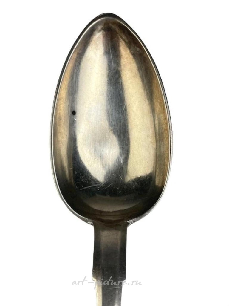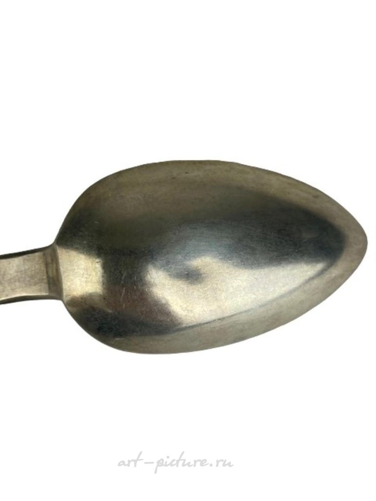 Антикварная русская серебряная ложка 84 пробы. Помечена клеймом. Длина 8 3/4 дюйма. Вес 2.55 тройских унций. (Вмятина на ложке, смотрите фото).