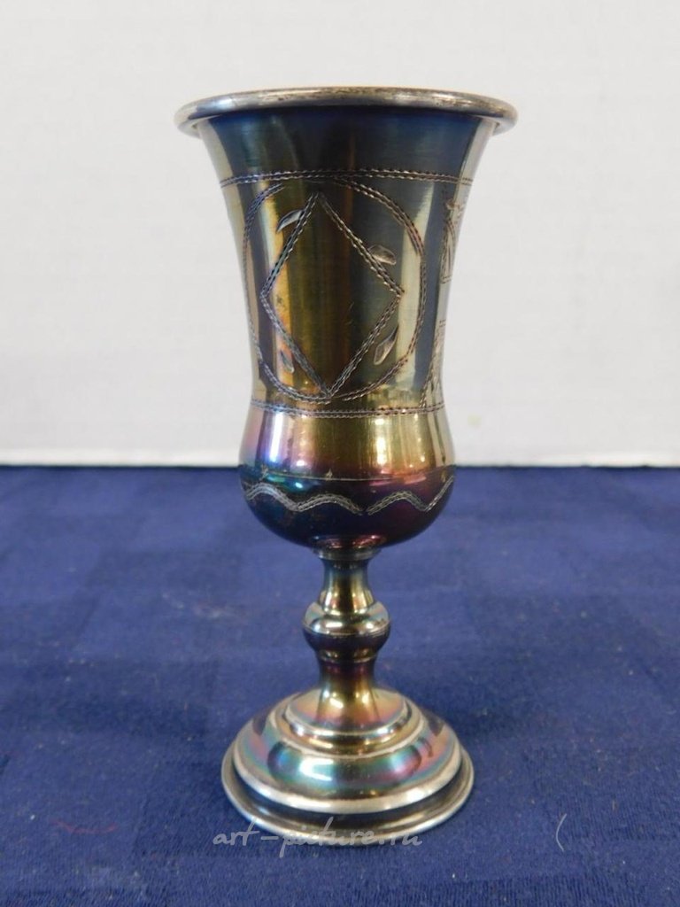 Два русских кубка, отметки 84 стандарта серебра, гравированные медальоны и края, высота 4 дюйма, общий вес 3,13 унции. Состояние: очень хорошее, оксидированное.