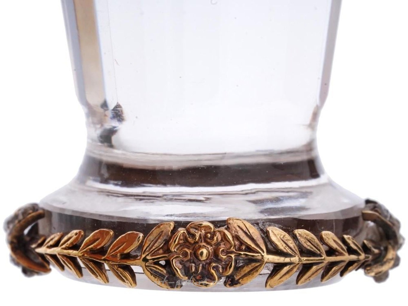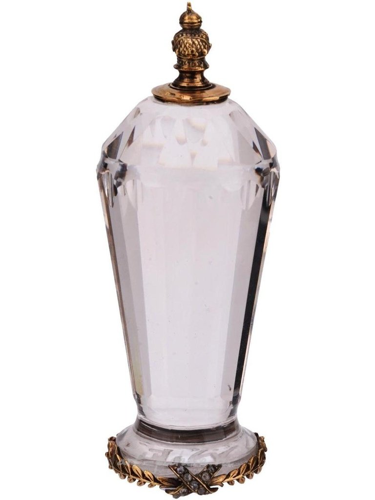 Изделие украшено позолоченной серебряной короной и лавровым орнаментом с бриллиантами. Маркировка 88 стандарта серебра и марка изготовителя находятся рядом с финишной деталью. Предмет поставляется в оригинальной коробке. МФ, вероятно, означает Марию Феодоровну, 1847-1928 гг., жену императора Александра III. Коллекционные русские изделия из серебра и ювелирные изделия, предметы роскоши для письменного стола.