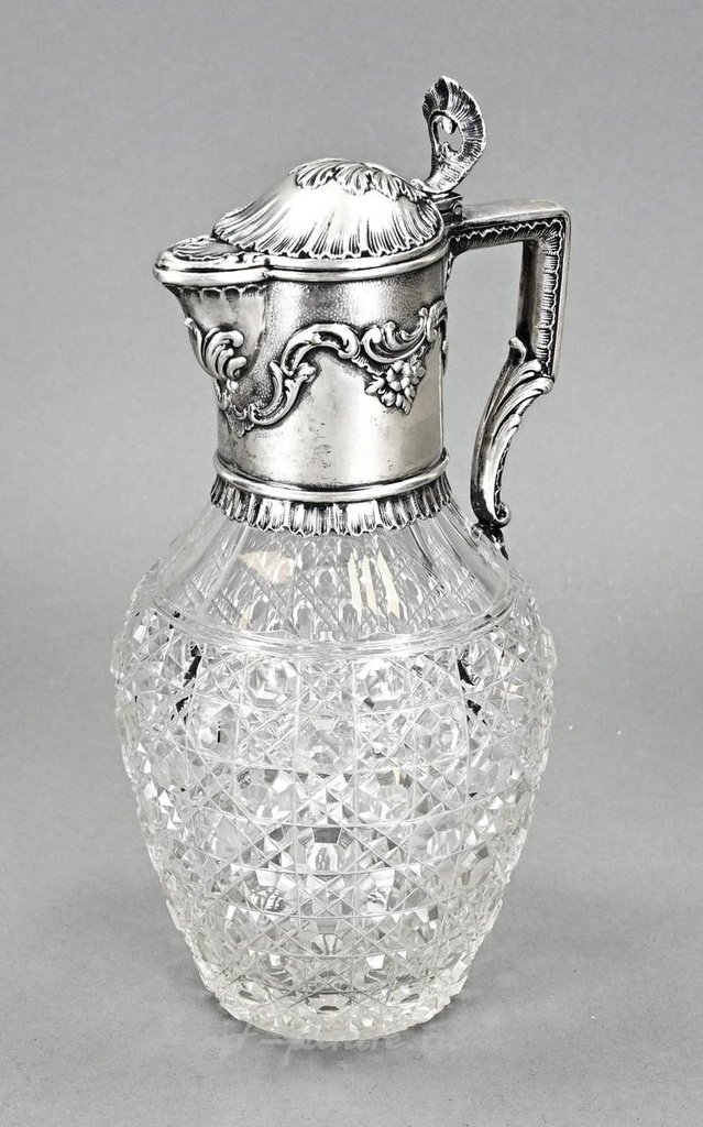 800/000. Крышка украшена пальметовидными краями, гирляндами и цветочным узором. Номер 102262. Марка: Wilkens & Söhne, Бремен. Размеры: 14x11x25 см. В хорошем состоянии.