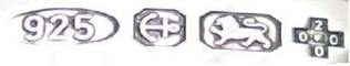 Кроме того, для удостоверения государственного стандарта ввозимого серебра были приняты числовые клейма «.925», заменившее «Идущего льва», и «.9584», подтверждающее «британский стандарт». В качестве щитка для ввозных клейм был принят овал10.