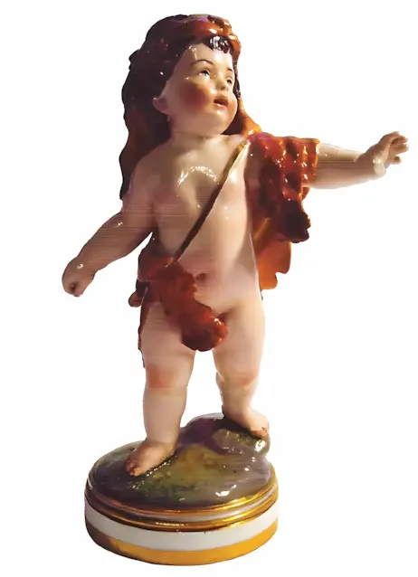 Скульптура путти 6 образе Геракла со ибкурой немейского льва. Модель А.К. Шписа. Фарфор, роспись подглазурная полихромная, позолота. 13,4x6,5x4,7