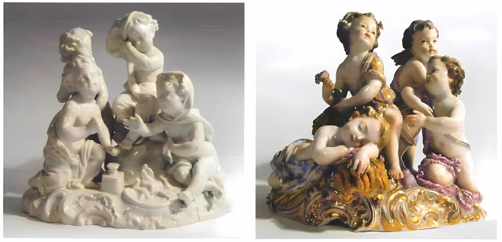 Гравюры имели огромную популярность среди скульпторов и живописцев фарфоровых мануфактур, и их закупали во Франции, Англии и Германии. На заводах формировались обширные коллекции книг и гравюр, которые служили источниками вдохновения. Как правило, модельеры стремились следовать образцам, вносили небольшие изменения или отбирали только одну фигуру из огромной композиции, однако каждый раз получалось переработанное, новое художественное произведение, которое адаптировалось к требованиям материала и передавалось из плоскости в объемное.