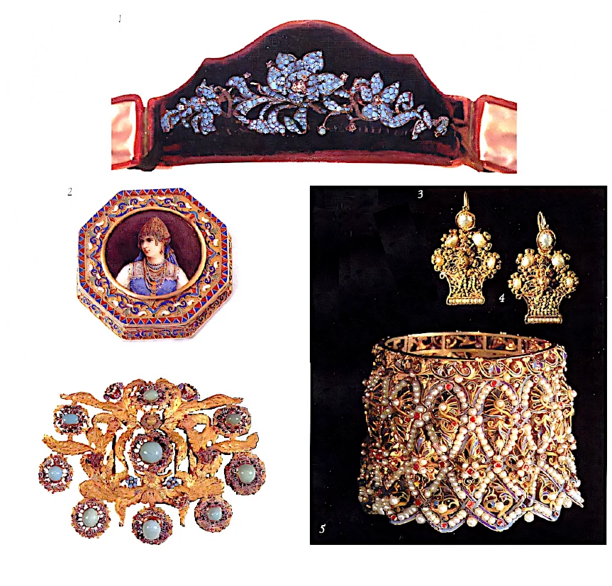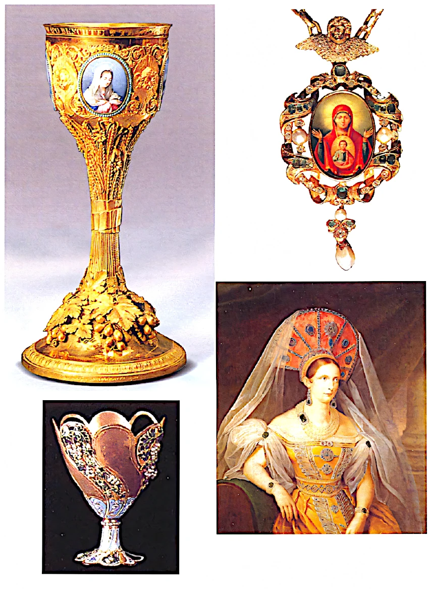 Французы в середине века флиртовали с Востоком: японские мотивы в украшениях, стилизация под Китай, новые эмали — всё это легло на волны будущего модерна (Art Nouveau). Русские, напротив, окунулись в православную, византийскую и даже языческую старину: резные иконостасы, эмалевые оклады, браслеты с героем древних былин. Так формировался неорусский стиль — не копия, а свежий взгляд на истоки нации.