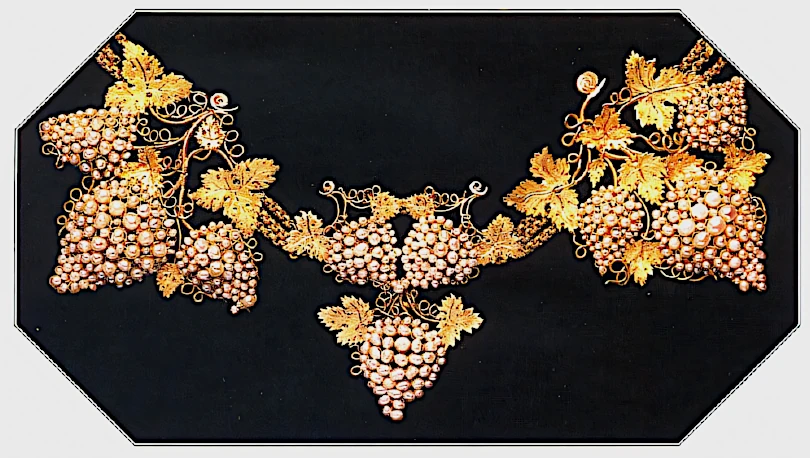 Символы живут не только в видах, но и в материалах: белые ягоды – из халцедона, красные — из коралла, листья и ветви – с цветной эмалью. Иногда жемчуг, ну а если заказчик весьма состоятельный – драгоценные камни, будто радуга на запястье. Это не было простым украшением, это было письмом: о себе, о времени, о чувствах, которые так трудно выговорить словами.