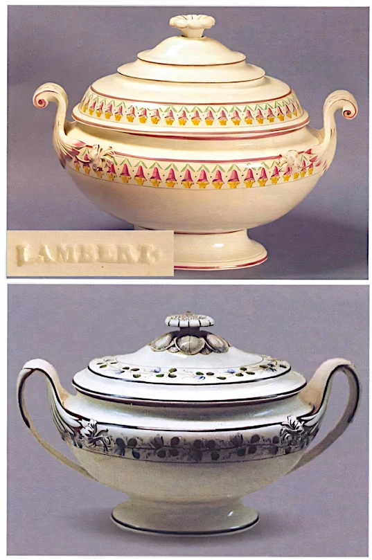 Марка в виде оттиска «LAMBERT» в тесте, которой маркированы предметы столового «Сербиза с колокольчиками» и тарелки с портретом герцогини Курляндской. 1827— 1835 г.г.