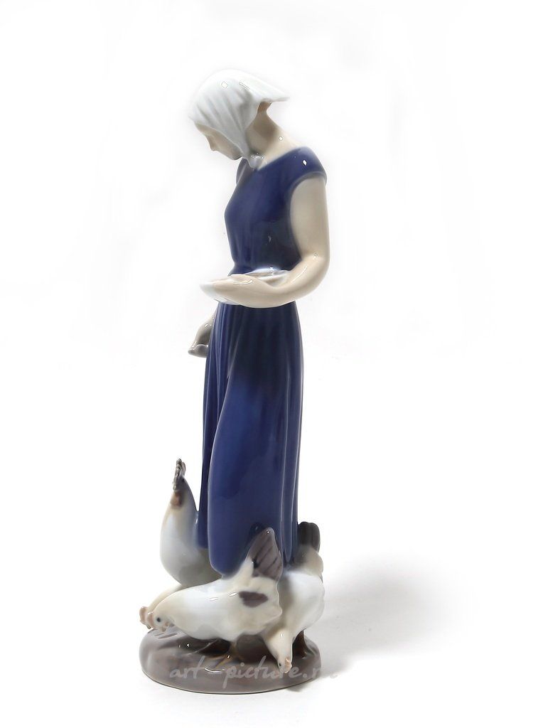 Ах, я просто не могу сдержать своего восторга, когда смотрю на эту восхитительную фарфоровую статуэтку! Она словно носит в себе всю прелесть и изысканность, которых так не хватает в нашем современном мире. Женщина в синем платье, держащая в ранимой руке миску, будто бы диалоги ведет с маленькими птицами, передающая нам атмосферу нежности и покоя.