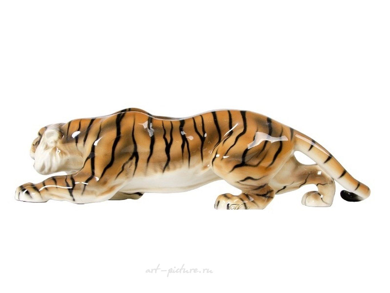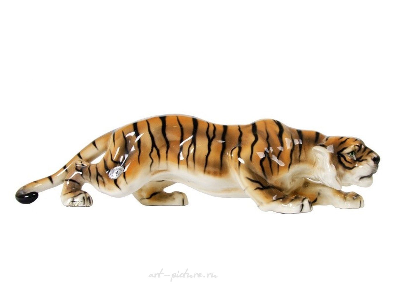 装饰性雕像“潜行的老虎”,采用釉面瓷器制作。 1935年在著名的“Goldscheider”工厂生产。 尺寸:长度46厘米,宽度10厘米,高度12厘米。 状态良好。 原创作品。