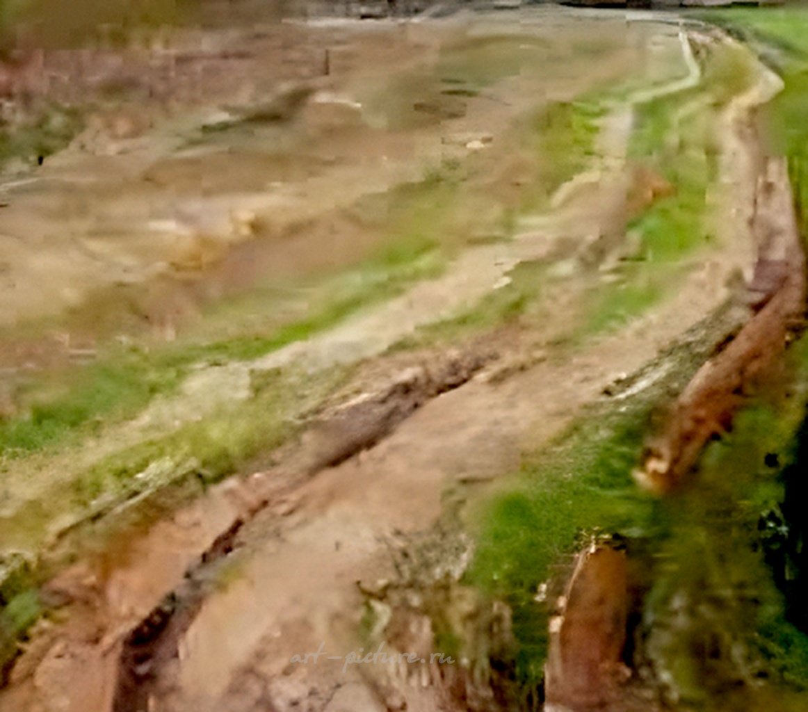 Думаю, что техника масляной живописи сама по себе обладает способностью передавать такие тончайшие нюансы жизни, когда каждая мазок словно открывает нам двери в другой мир. Кажется, что цвет и текстура, подобно застывшим каплям дождя на листе, дышат и живут в этой картине. Я всегда восхищался тем, как художники могут превратить простые пейзажи в магию, где невидимые нити соединяют прошлое и настоящее.