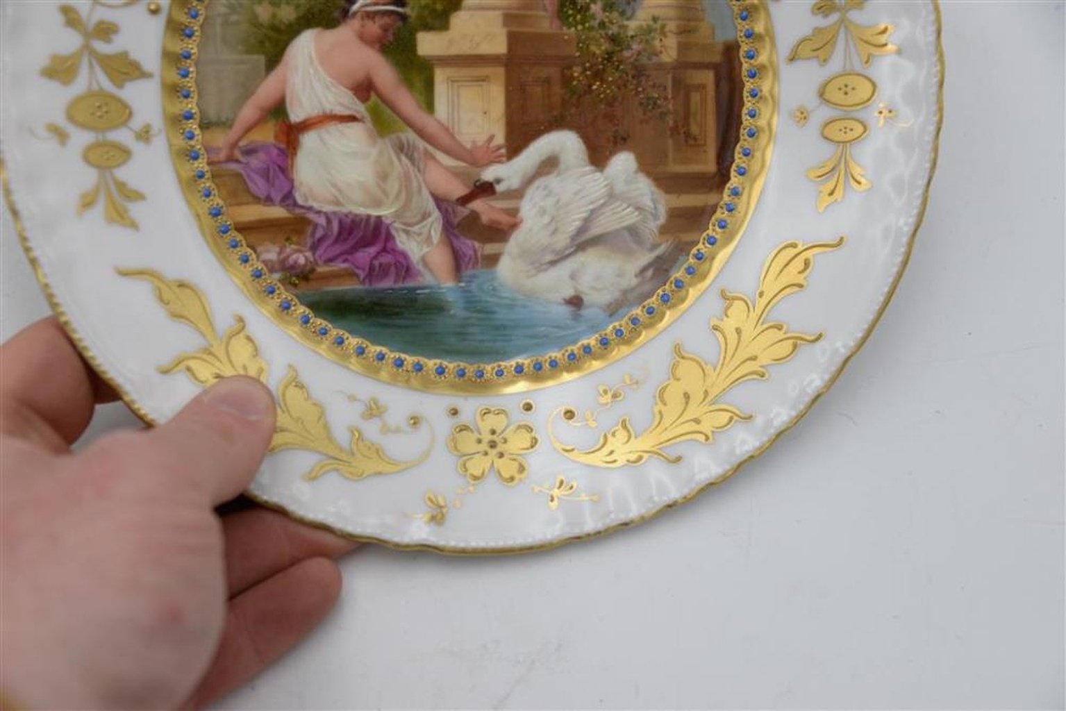 四幅肖像盘,两个维也纳皇家,一个利摩日,一个德累斯顿,一个是"勒达与天鹅",其中三个有艺术家签名,直径为8 1/2 - 9 1/2英寸。