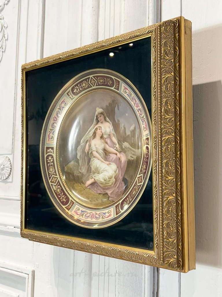 两位女神的皇家维也纳画像盘。直径12英寸;镶嵌17 x 17 x 4。请参阅照片以了解更多情况信息。