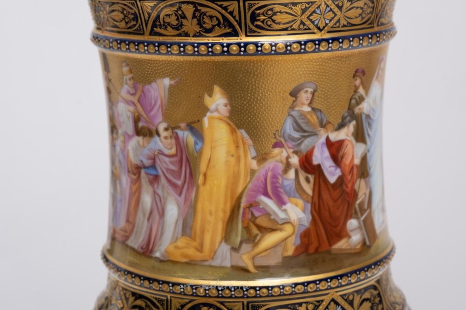高大的维也纳皇家手工装饰覆盖圣杯19世纪。用维也纳皇家标志签署的高大的维也纳皇家手工装饰覆盖圣杯。