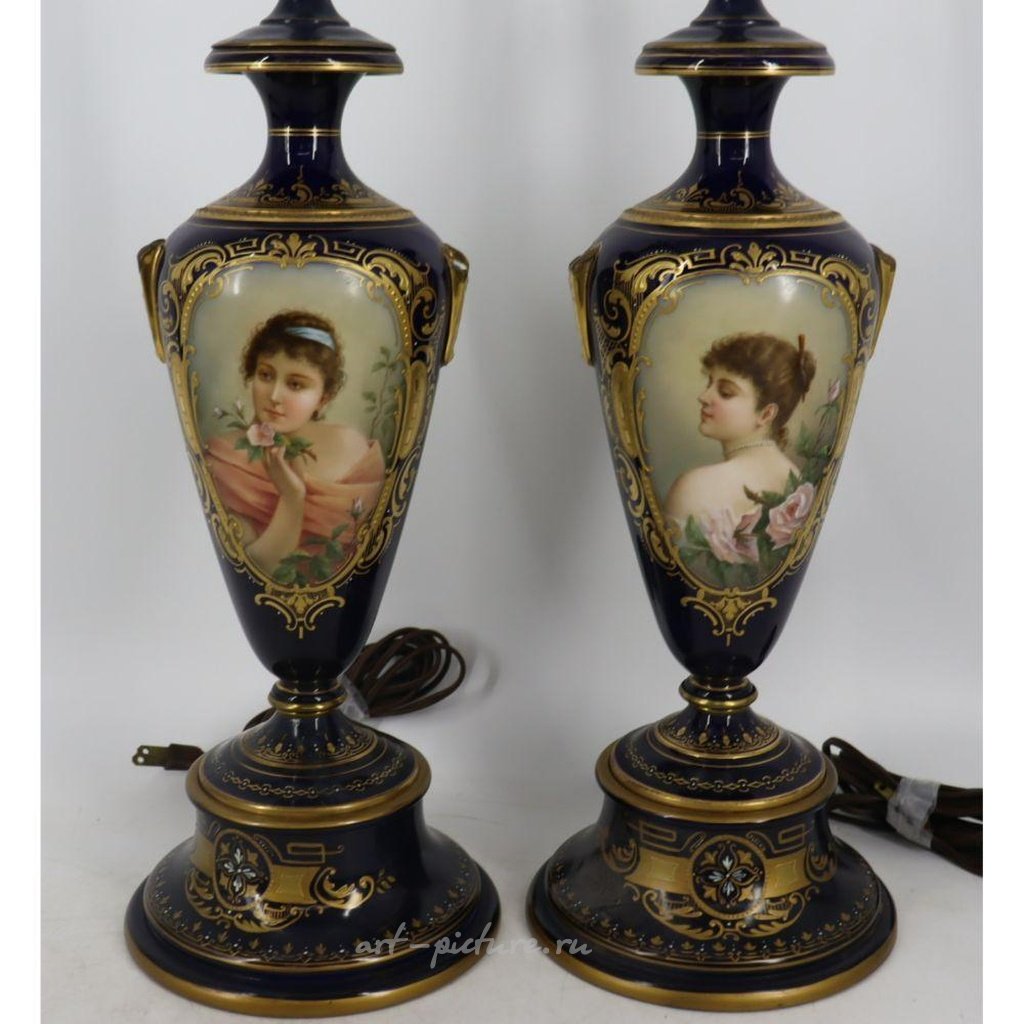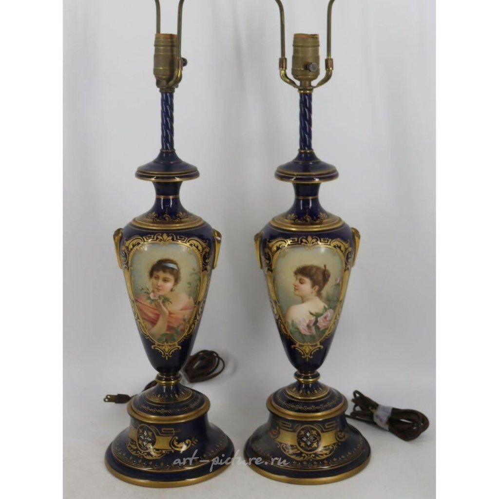 带有“C. Heer”签名的每盏灯都展示着一位可爱女性的肖像。可能需要修复/修整手柄区域。来自纽约霍桑的房产。