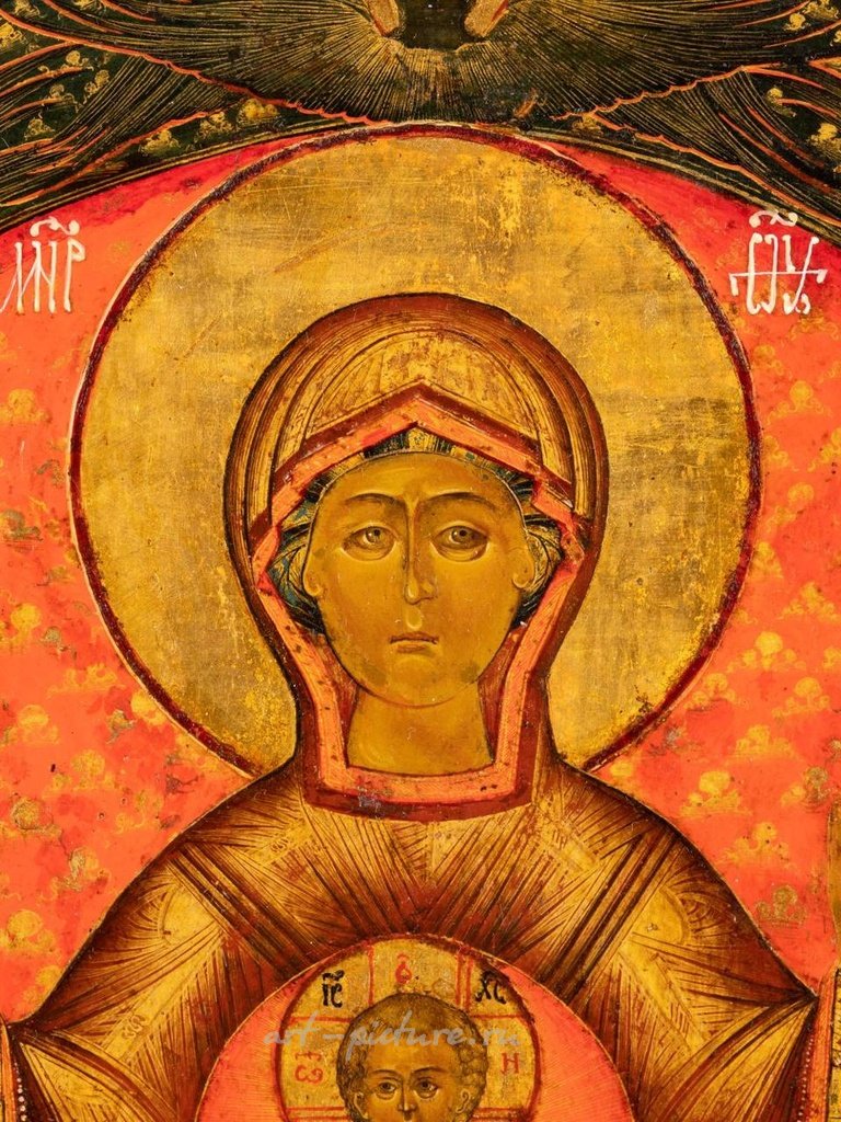 大而优雅的图标,描绘了带有厚重银金外衣的圣母子图标,俄罗斯,19世纪中叶(图标),俄罗斯,莫斯科,亚历山大·阿法纳谢夫,1860年(外衣)。温度在带有方舟的木板上。外衣上有丰富的铸造和浮雕,描绘了葡萄藤卷曲和图案,装饰着多彩的切割宝石。被城市标记。